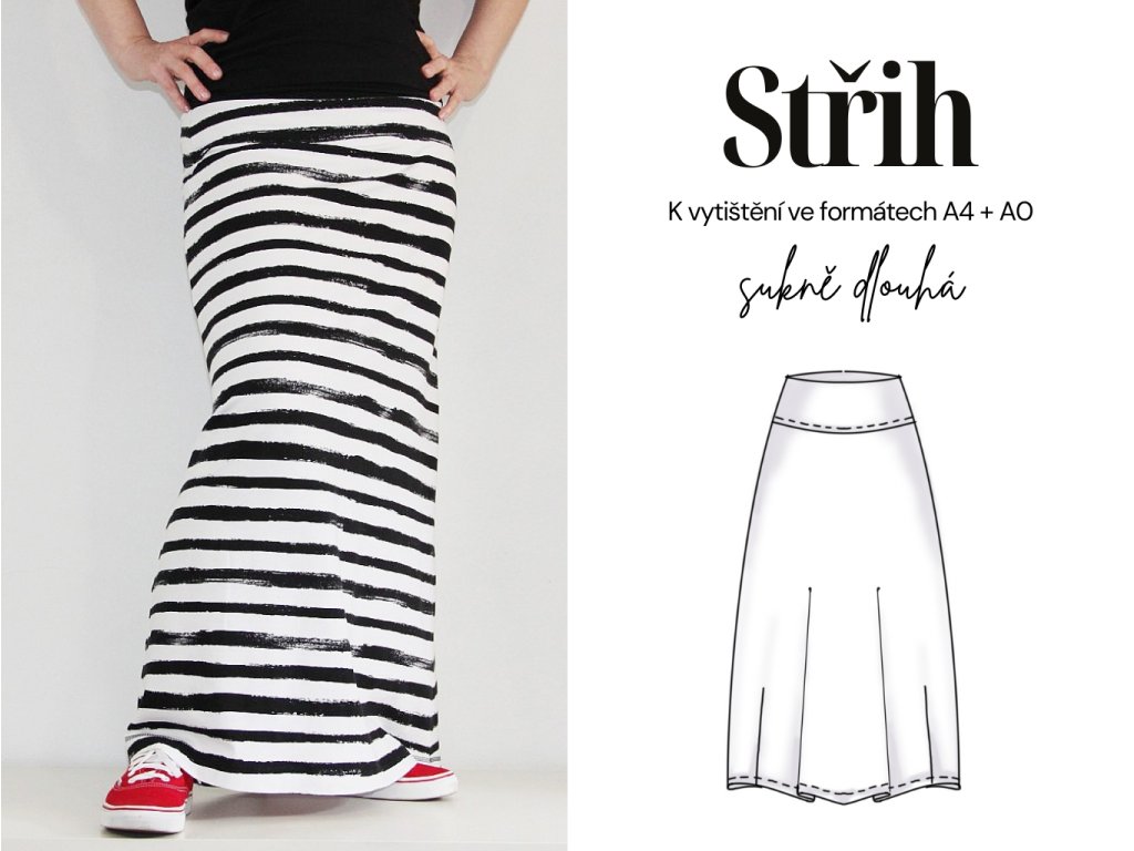 Střih na dlouhou sukni, kterou si sami vytisknete na své tiskárně nebo plotru.