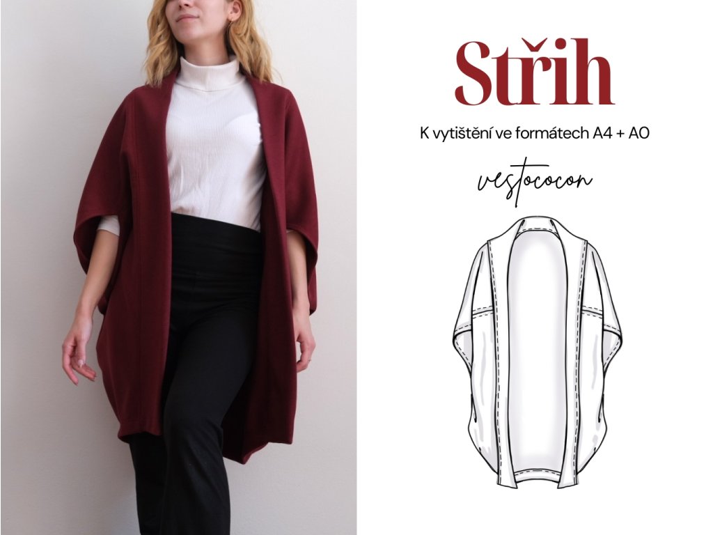 Uvolněním střihu vycházím vstříc těm z vás, kterým nestačí nebo nevyhovuje moje nabídka hotových vestococonů a chtějí si ho ušít z vlastního materiálu a pro vlastní potřebu. Pokud máte zájem používat střih a své výrobky pak prodávat dál, napište mi.